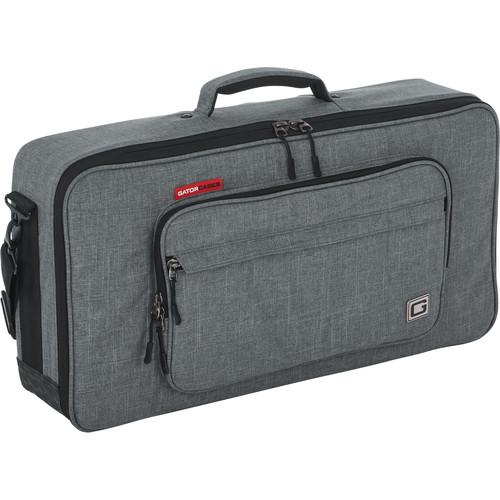 The medium Kaces Xpress Series Keyboard Bag is designed to carry a keyboard with 61 keys, and features a water-resistant, luggage-grade polyester exterior with a quilted grip handle, a detachable shoulder strap, and dense protective foam. The bag includes two large and expandable pockets with room for a laptop or tabletop synth, cables, power supp...