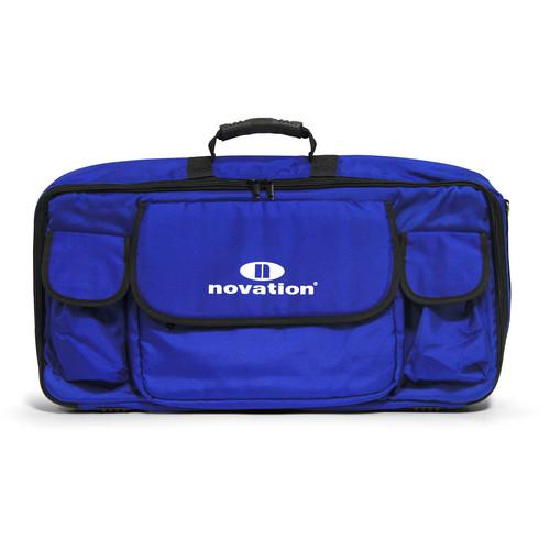 The Novation UltraNova Gig Bag (Blue) is a custom designed to carry a Novation UltraNova Analog Modelling Synthesizer. The bag is lined with padding to withstand reasonable impact. The bag has 1 large and 2 small front pockets to hold laptop computer, cables or other gear. It has a Novation logo on the front of the bag. The bag is carried by a han...
