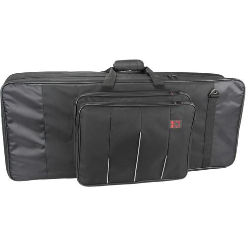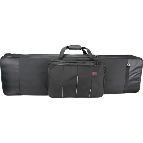 The large Kaces Xpress Series Keyboard Bag is designed to carry a keyboard with 61 keys, and features a water-resistant, luggage-grade polyester exterior with a quilted grip handle, a detachable shoulder strap, and dense protective foam. The bag includes two large and expandable pockets with room for a laptop or tabletop synth, cables, power suppl...