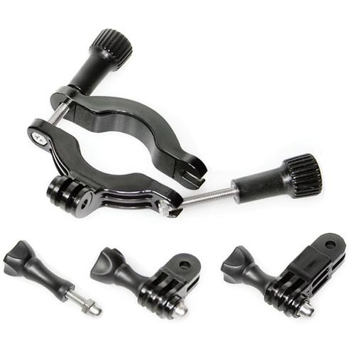 The Bike Mount with GoPro Adapter from SHILL lets you attach your action camera to handlebars or tubes up to 1.75" in diameter. It features a 1/4"-20 screw for mounting your action camera and comes included with a 1/4"-20 to three-prong mount adapter for use with GoPro cameras. UPC: 629266002773 In the Box SHILL Bike Mount with GoPro Adapter GoPr...