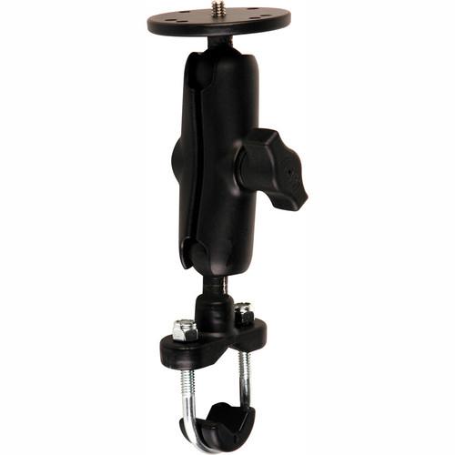 The Delvcam RAM-B-149Z-C1U Motorcycle Camera and Video Mount, with a zinc coated U-bolt rail base, consists of a 1" diameter ball and a 1/4"-20 thread centered on a 2.5" diameter plate. It acts as a mounting solution for both still and moving cameras. The base has a 1” diameter rubber ball that sits at right angles to the hand...