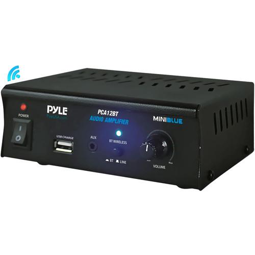 Enjoy stereo sound with the Pyle Pro PCA12BT Stereo Power Amplifier. Its 2-channel design outputs up to 25W per channel for true stereo sound. The integrated rotary volume control will allow you to fine-tune your audio playback, and it features an 1/8" aux input on the front and a hardwired stereo RCA input on the back. Integrated Bluetooth connec...