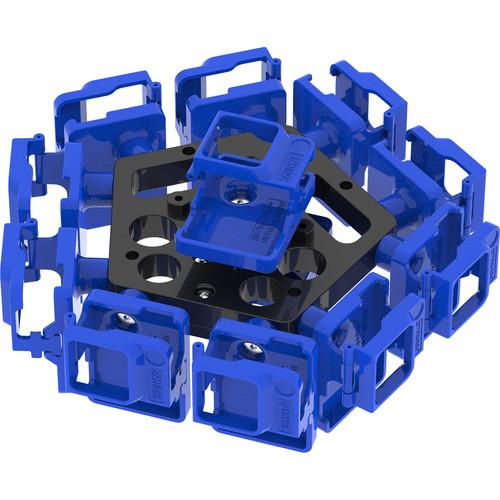 This Pro10 v2 360° Plug-n-Play Rig from 360RIZE allows you to capture spherical 360° video with ten GoPro HERO7 or HERO6/5 Black cameras. This version of the Plug-n-Play rig features the v2 design with a solid, anodized aluminum core and detachable camera-mounting clips that are compatible with the GoPro HERO7/6/5. The ten-camera configura...