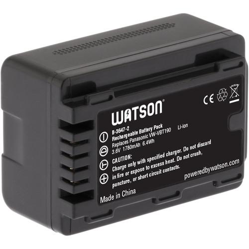 The Watson VW-VBT190 Lithium-Ion Battery Pack works with the same cameras as the Panasonic VW-VBT190 series batteries. This replacement battery pack features a capacity of 1780mAh, 3.6V of output power, and 6.4 watt hours. Small and lightweight, lithium-ion batteries can be charged or discharged at any time without developing memory effects. Comp...