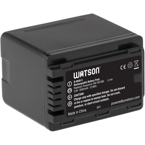 The Watson VW-VBT380 Lithium-Ion Battery Pack works with the same cameras as the Panasonic VW-VBT380 series batteries. This replacement battery pack features a capacity of 3560mAh, 3.6V of output power, and 12.8 watt hours. Small and lightweight, lithium-ion batteries can be charged or discharged at any time without developing memory effects. Com...