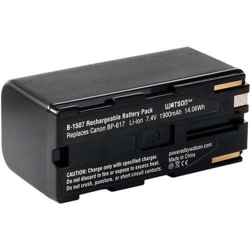 The Watson BP-617 Lithium-Ion Battery Pack works with the same cameras as the Canon BP-617. This replacement battery pack features a capacity of 1900mAh, 7.4V of output power, and 14.06 watt hours. Small and lightweight, lithium-ion batteries can be charged or discharged at any time without developing memory effects. In the Box Watson BP-617 Lithi...