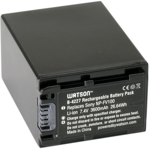 The Watson NP-FV100 Lithium-Ion Battery Pack works with the same cameras as the Sony NP-FV100 (not compatible with Sony HXR-NX70U). This replacement battery pack features a capacity of 3600mAh and 7.4V of output power. Small and lightweight, lithium-ion batteries can be charged or discharged at any time without developing memory effects. Compatib...