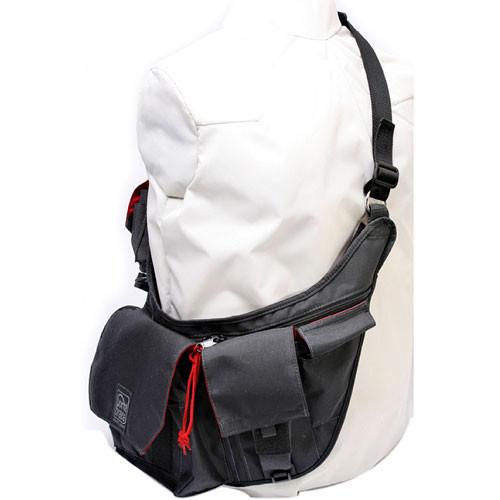 The black Porta Brace SS-MDV1 Messenger Sling is a stylish, convenient, and comfortable way to carry a small camcorder and its accessories. At the top edge is a clear vinyl window which unfolds to cover the equipment in rain, snow, or blowing dust. There is plenty of space to accommodate accessories, and the shoulder strap is adjustable, nicely pa...