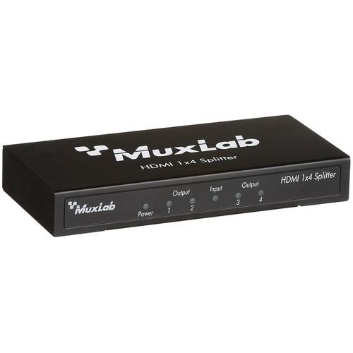 The MuxLab HDMI 1 x 4 Splitter allows you to distribute an HDMI signal to up to four HDMI displays. Featuring HDMI 1.4 connections, it supports resolutions up to 3840 x 2160 UHD 4K @ 24/25/30 fps, including 1080p @ 60 fps. It supports up to 12-bit color depth per RGB channel, for a total of 36-bit Deep Color. It also supports 3D video and LPCM 7.1...