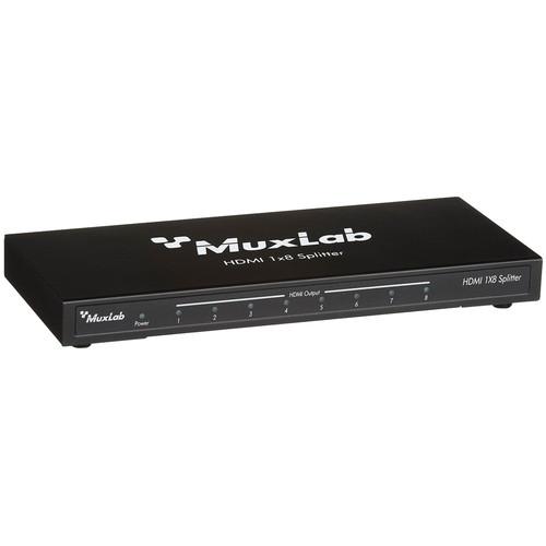 The MuxLab HDMI 1 x 8 Splitter allows you to distribute an HDMI signal to up to eight HDMI displays. Featuring HDMI 1.4 connections, it supports resolutions up to 3840 x 2160 UHD 4K @ 24/25/30 fps, including 1080p @ 60 fps. It supports up to 12-bit color depth per RGB channel, for a total of 36-bit Deep Color. It also supports 3D video and LPCM 7....