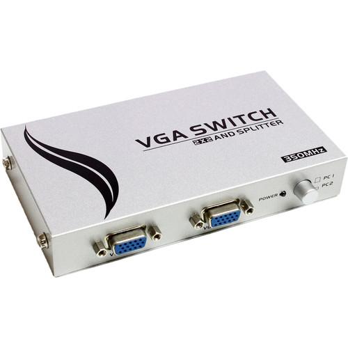 View two computers on two separate monitors or use one computer and duplicate the image on dual monitors using the 2 x 2 VGA Switch and Splitter from Tera Grand. If you were to have an audience in two separate rooms, this splitter could be used to display the presentation in two rooms simultaneously. This device is equipped with two VGA inputs, tw...
