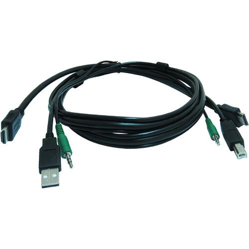 Connect an HDMI- and USB-equipped computer to a KVM switch with the HDMI KVM Cable with USB and Audio from IOGEAR. This KVM cable is equipped with input and output HDMI video connectors, a USB Type-B input connector, a USB Type-A output connector, and dual sets of 3.5mm audio jacks for input and output. The cable supports up to 1080p video resolut...
