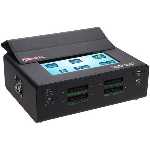The SuperCopier 8" SAS Hard Drive Duplication Unit from MediaClone can duplicate, clone, format, and erase hard drives. The duplication unit has a built-in 8" 800 x 600 color touchscreen display. It's also equipped with an e-SATA port, four SAS/SATA ports, six USB 3.0 ports, two USB 2.0 ports, and four LED power indicators. The SuperCopi...