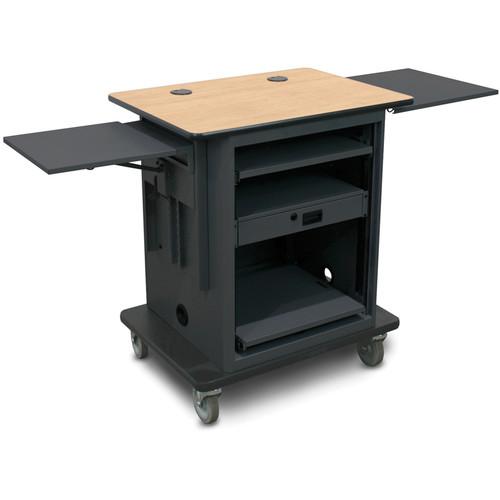 The Bronze model Instructor Series Presentation Cart from Marvel functions as a teacher's station, supporting both A/V and desk functions with a small footprint. The "Instructor" is designed to support today's classroom needs and safety requirements. The cart is constructed of 18 and 22 gauge welded steel, and is equipped with a no-tip safety base...