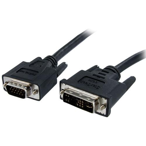The 10', black DVI to VGA Display Monitor Cable from StarTech features a DVI (analog) male connector and a VGA (high-density D-Sub) male connector, allowing you to connect an analog or dual mode flat panel display to a PC or Mac computer with a DVI analog video card. It is expertly designed and constructed of high-quality materials. High-qualit...