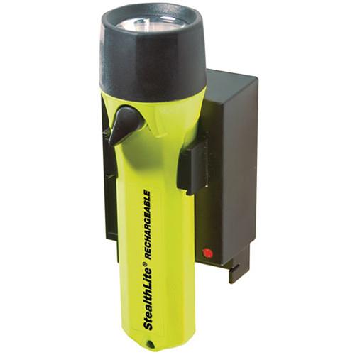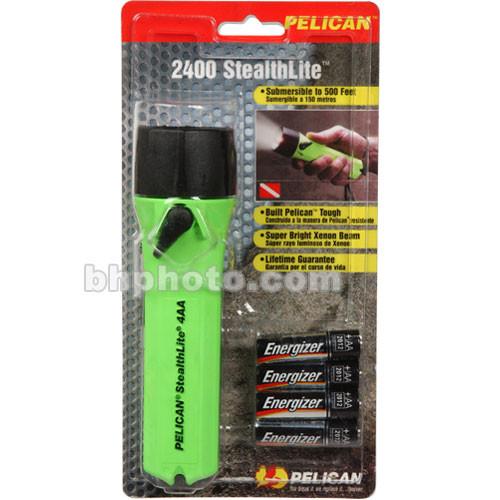 The Pelican Stealthlite 2450 Light (Black) is an indestructible flashlight with a tough resin body that is corrosion proof and resistant to extreme temperatures. The powerful 2.6W Xenon lamp is powered by a NiMH battery pack (included) or 4 AA batteries. The bright beam penetrates thick smoke, fog, and dust. Attach the Stealthlite to an optional h...