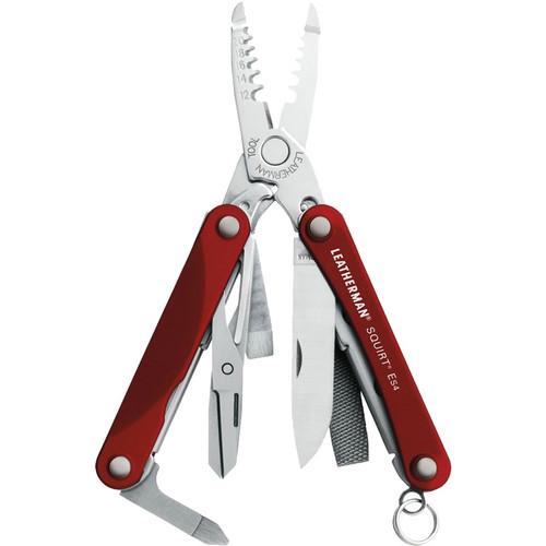 The Leatherman Squirt ES4 Multi-Tool features stainless steel construction with a red finish and 13 tools including the following: a 1.6" 420HC straight blade, spring-action components such as needle-nose pliers, electrical wire cutters, and a wire stripper that can handle 12-20 AWG wire. There is also a double-sided flat/phillips screwdriver, wo...