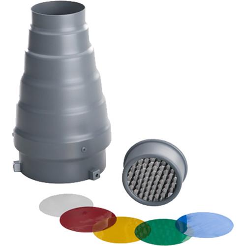 The Accessory Snoot with Honeycomb Grid Set fits all Photoflex StarFlash strobe heads. The set contains a snoot that tunnels the light into a soft-edged circle. The size of the circle projects smaller as you get closer to the subject. For an even tighter beam angle (for hair or side lighting), a 40° honeycomb grid is included. Red, yellow, blu...