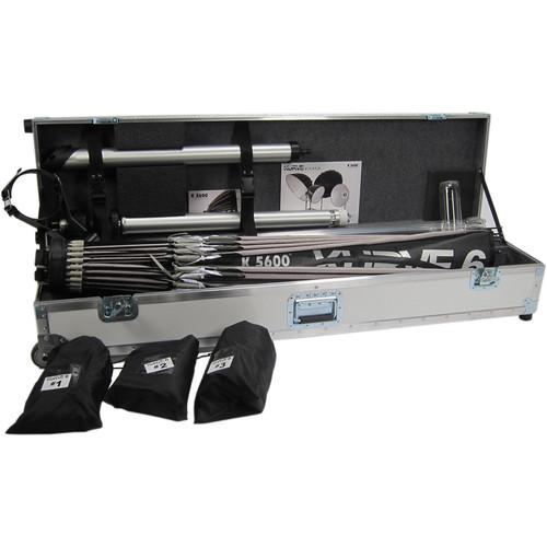 The Kurve 4.5 Umbrella Kit from K 5600 Lighting includes an umbrella, focus tube (HT leads), focus tube (baby pin), pyrex shield x2, counter light reflector, umbrella yoke mount with crank, diffusion #3, diffusion #2, diffusion #1, and hard white carrying case. Designed for use with the Kurve 4.5' parabolic reflector, the parabolic umbrella soften...