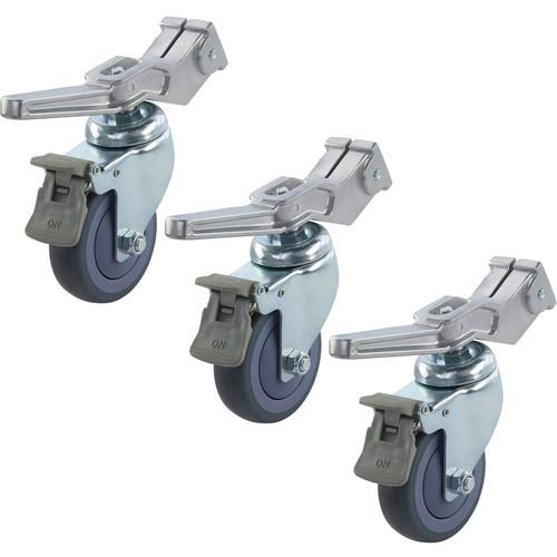 This Kupo 100mm Brake Caster 30mm Square (Set 3) is a set of 3 steel and rubber 3.0-15/16" (100mm) casters which fit 1-3/16" (30mm) square legs. They feature an integral braking system that prevents rolling can be actuated with a tap of the foot. In the Box Kupo 100mm Brake Caster 30mm Square (Set 3) 5 Year Manufacturer's Warranty Table of Cont...