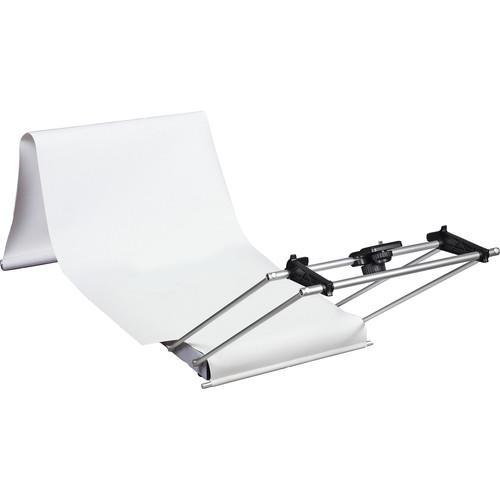 Ideal for small products and ecommerce photography, the Studio-Out-of-the-Box 2.0 from Kaiser is a collapsible mini studio that folds down to 23 x 13 x 2.4". The system has a matte gray 11.8 x 17.7" table that can be extended to 29.5". The studio has a mount for cameras up to 1 lb and another to hold smartphones. Two reversible backgrounds (white/...