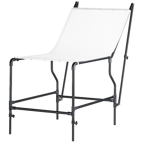 The black-finished Manfrotto Still Life Shooting Table Frame without Plexiglass Panel consists of the aluminum tubular sections that join together to form the base for the separately purchased white, translucent Perspex shooting surface. The distance from the floor to the flat section of the shooting surface is 32.68" and the height includin...