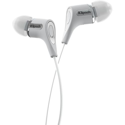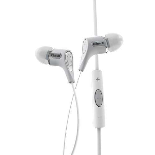 The white R6i In-Ear Headphones from Klipsch feature dual magnet moving coil 6.5mm drivers housed in an aluminum and elastomer body. The tangle-resistant, flat cable has an in-line 3-button iOS remote and microphone that allows you to control playback and take calls on your compatible iPhone, iPod touch, and iPod models. The included 4 pairs of si...