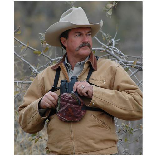 This medium, MAX-1 Camo Bino-Shield from Crooked Horn will keep your binoculars clean and dry while holding them tight against your chest to reduce bouncing. Simply wrap the elastic strap around your body and buckle it, then slip your binoculars into the Bino-Shield as they hang from your existing harness or neck strap. A zippered pocket on the Bi...