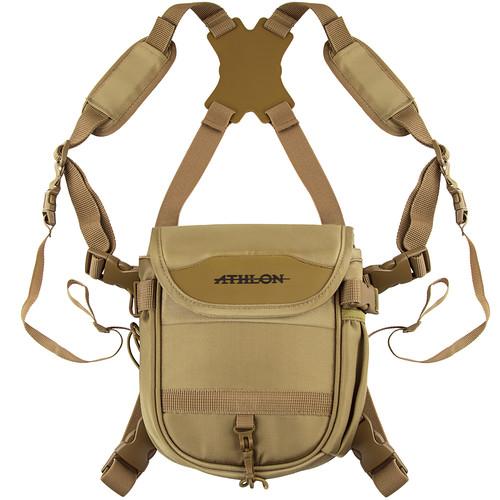 Comfortably carry your binoculars with the desert tan Binocular Harness from Athlon Optics. This harness promotes one-handed binocular use, and is easily adjusted to fit close to the chest. This makes running easier, and helps to limit sagging and bouncing. Weather-resistant, quiet materials are a good match for outdoor activities such as nature-w...