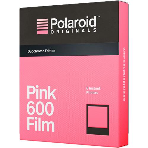 This pack of Duochrome Pink & Black 600 Instant Film from Polaroid Originals contains eight sheets of film for use with Polaroid 600-series cameras. Producing unique two-tone images, this special ISO 640 duochrome film offers a dusky magenta and rich black tonal scale for a dramatic appearance. The overall rose-colored mood is complemented by a ma...