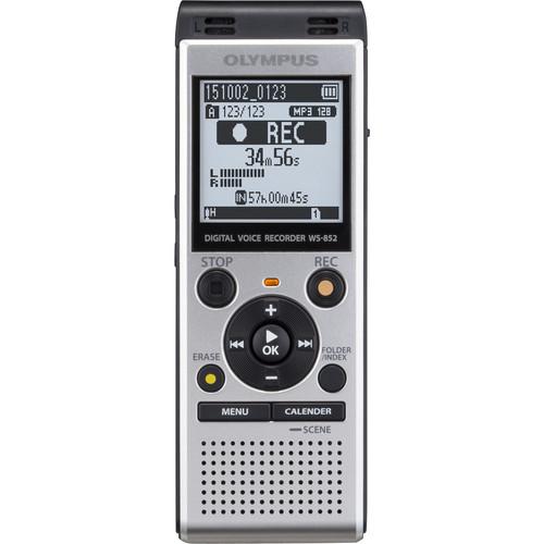 The silver WS-852 from Olympus is a digital voice recorder with two directional microphones positioned at a 90° layout for capturing audio. Recognized for its clear audio quality and superb operability, the WS-852 features the intelligent Auto Mode which automatically adjusts the recording level to match the volume of the sound source. The di...
