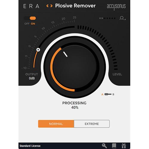 - ERA Plosive Remover - Automatic Audio-Repair Plug-In (Download) The Accusonus ERA Plosive Remover is an audio-repair plug-in that allows you to automatically remove distracting plosive thumps (such as "p", "t", "b") from audio recordings. Great for music, post-production, podcast applications, and more, it uses a single-knob operation and a simple user interface to efficiently clean up your sound with low latency and low CPU usage, while preserving the full quality of your audio.