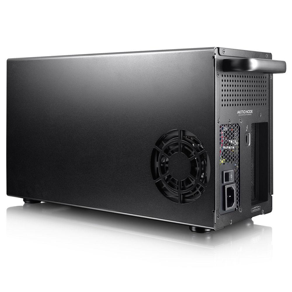 Product description Connect an external graphics card to your computer using the power of Thunderbolt 3 with the Node Thunderbolt 3 External PCIe Box for GPUs from AKiTiO. Once connected, your system will be equipped with additional GPU power, enabling it to do things that are normally handled by a high-end workstation or gaming computer. If you're a video editor or colorist, a dedicated GPU helps reduce the time it takes to render footage and for VR enthusiasts, your system is better equipped to handle headsets and higher framerates. This housing utilizes a PCIe x16 slot that can support a full-length, full-height, and double-width cards and operates using an integrated 400W power supply. Included is a Thunderbolt 3 / USB Type-C cable. General Features - Thunderbolt 3 for fast transfer speeds up to 40 Gb/s