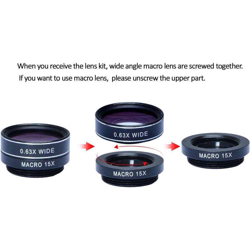- These two small lenses are screwed together for easy storage. To use the wide-angle, simply attach both lenses to the clip provided. To use the macro lens, simply unscrew the wide-angle lens.