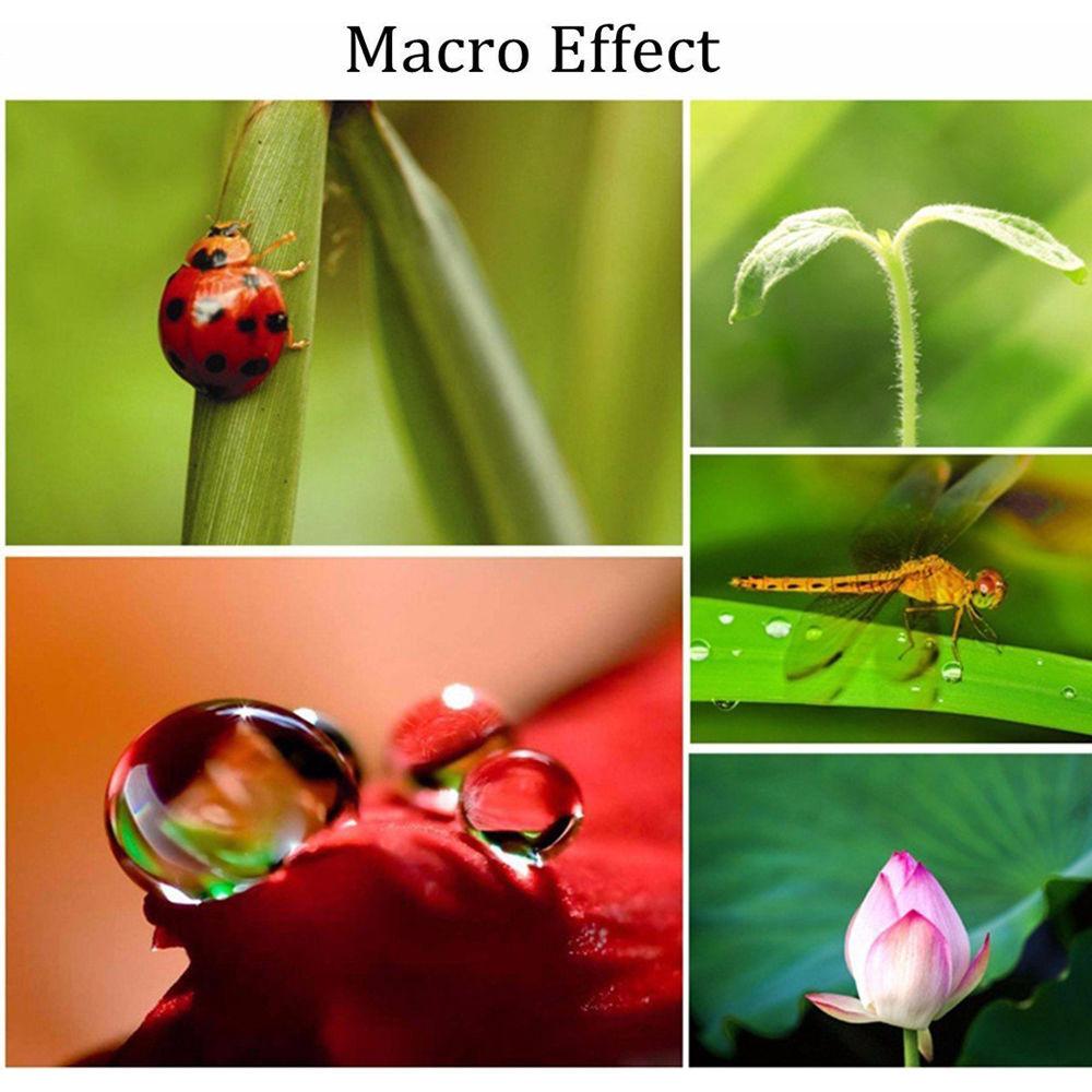 Note: In order to get a pronounced effect when using this lens, you need to place the transparent cap on the surface of object that you want to shoot, make sure you don't block your light source, and keep 0.8 x 1.2" / 2 to 3 cm from the subject. | | | | Package Weight | 0.42 lb | | Box Dimensions (LxWxH) | 6.9 x 3.65 x 1.55" |