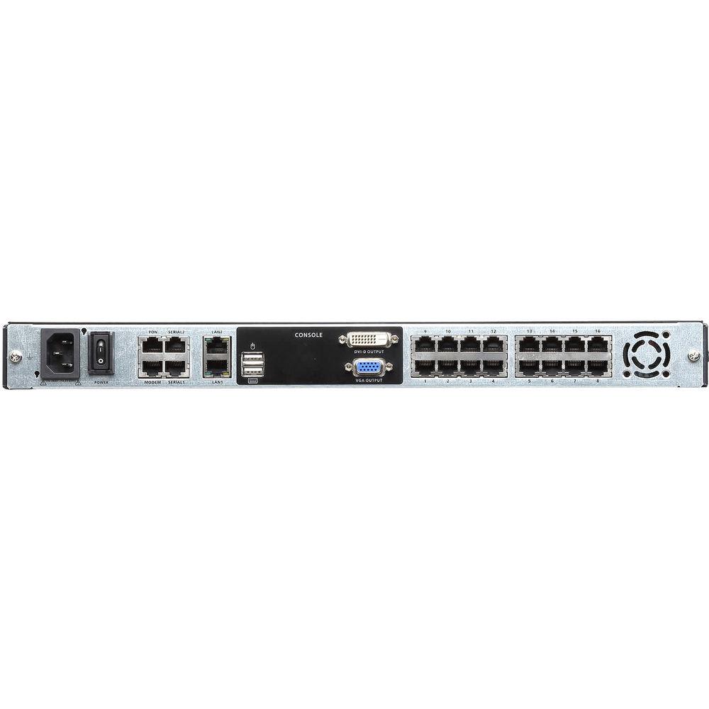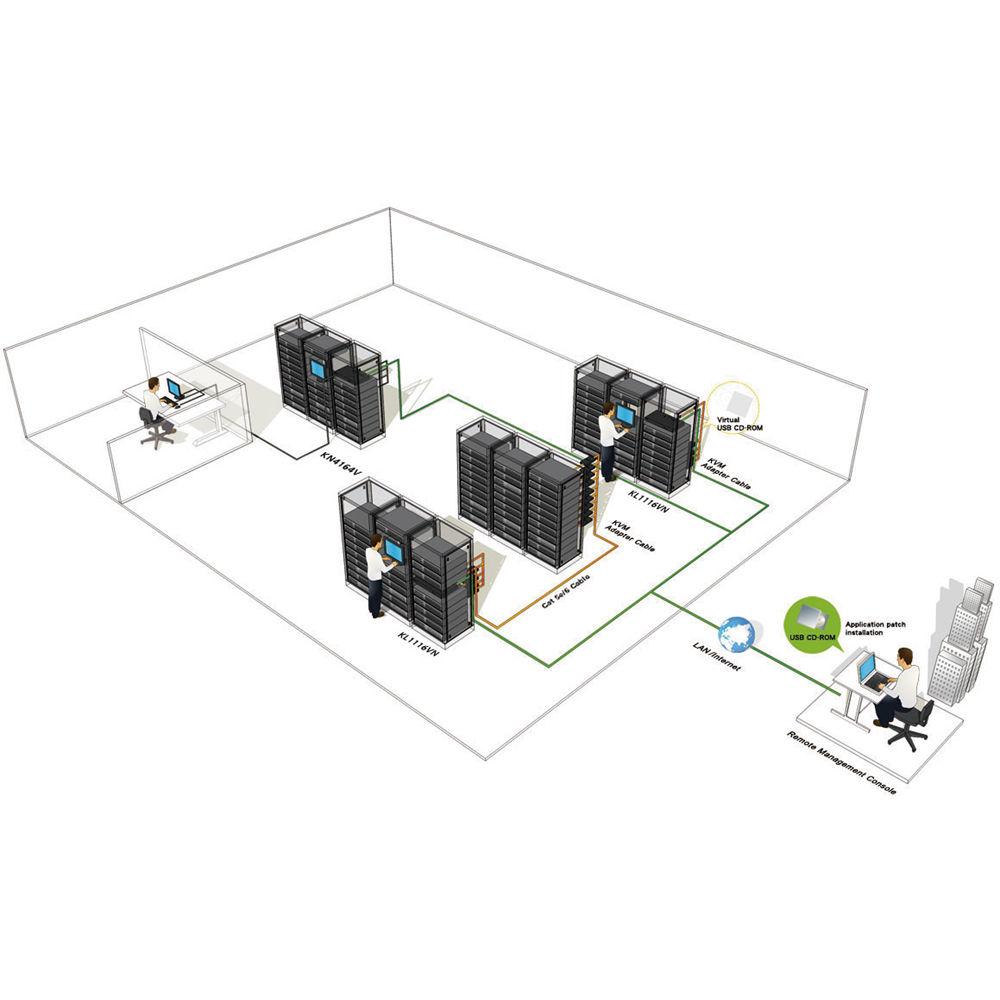 Product description Provided by third party: ATEN's KL1116VN 16-port Cat 5 dual rail LCD KVM over IP switch features an independently retractable, dual slide 19" LED-backlit LCD monitor and keyboard with built-in touchpad. The KL1116VN switches allow local console and remote over IP access for operators to monitor and manage their entire data center locally at the switch, and over a network using a web-based browser. In addition, they offer out-of-band access with external modem support for BIOS-level troubleshooting when the network is down. To help manage and control an entire data center, the KL1116VN KVM over IP switches support blade servers and chassis with powerful features such as Power Association which allows KVM ports to be associated with ATEN PDU power outlets for power management of servers from the KVM switches' user interface. Every operation and change from the BIOS level to logging in, from running software applications to configuring the operating system is recorded and saved to a secure video file as evidence, without exception. The Virtual Media function lets you map to storage media on USB, hard disk and DVD/CD drives located on remote servers - allowing administrators to conduct file transfers, install applications, run O.S. updates, or perform diagnostics across a network with ease. - Key Features