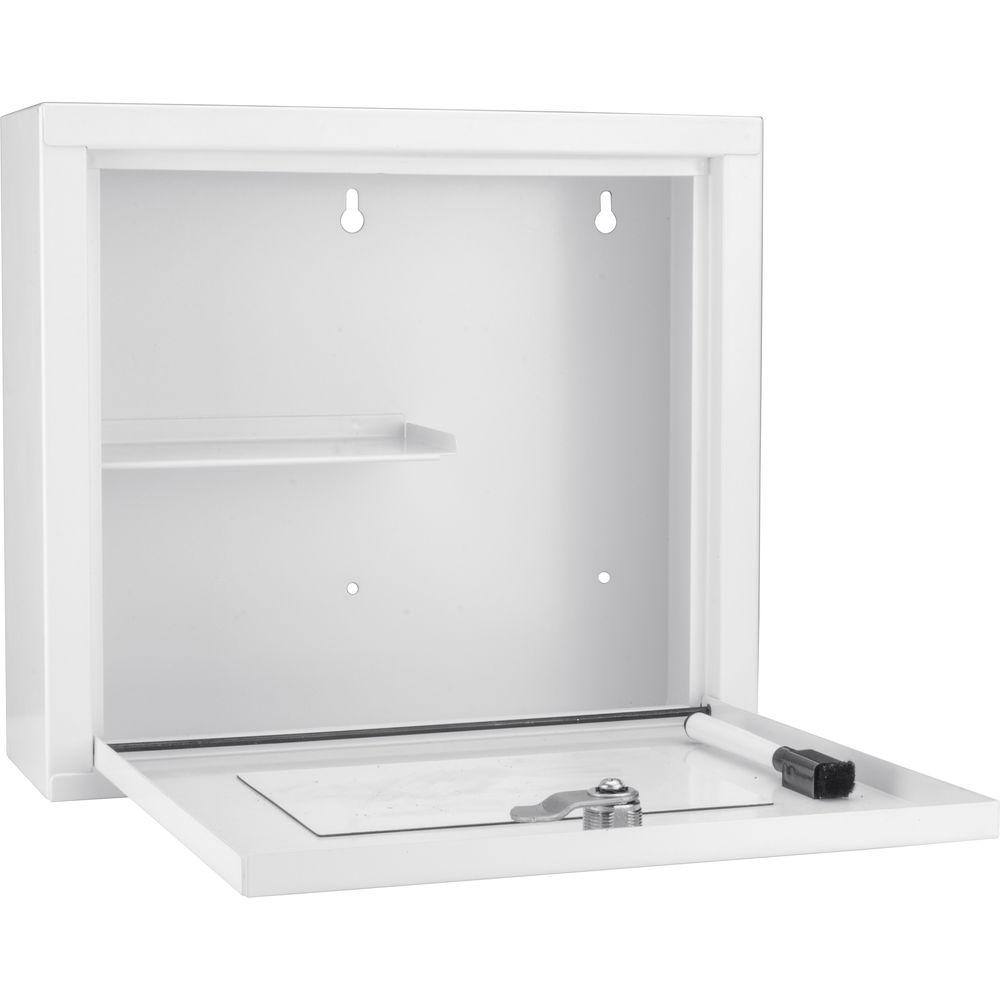 Product description Store medicine and medical supplies securely in the small Medical Cabinet from Barska. Constructed of sheet steel, the cabinet has a key lock, an internal shelf, and a dry-erase pad and magnetized pen for notes. -