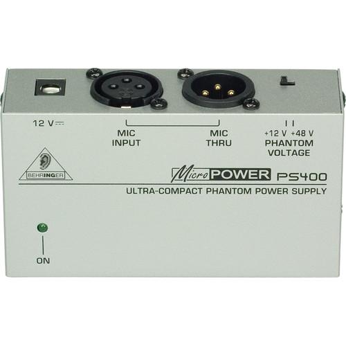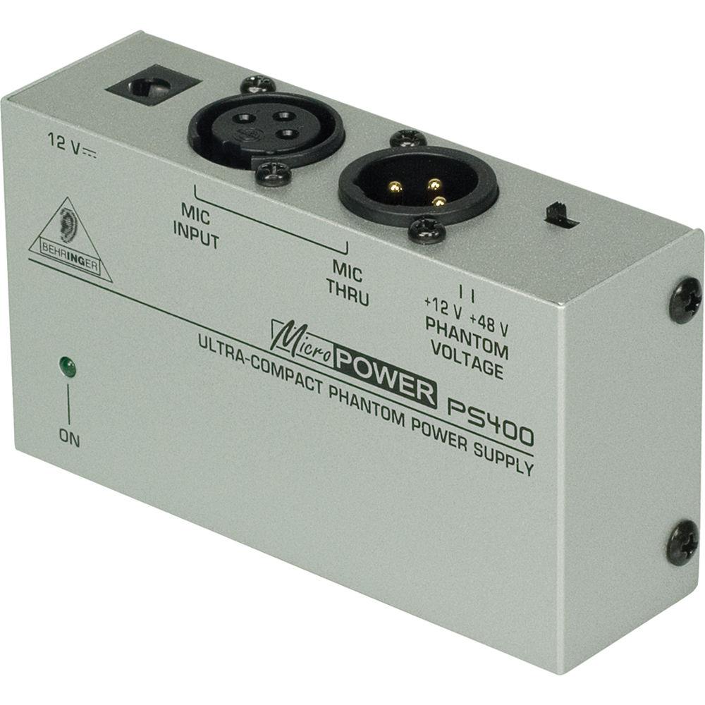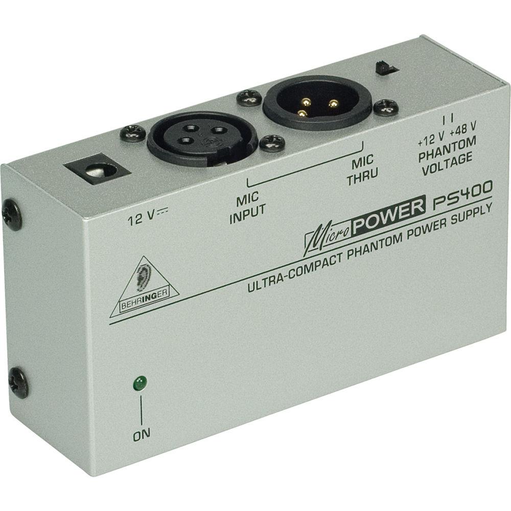 - The PS400 includes a switch for choosing either 12V or 48V phantom power output, making it useful for the broadest range of condenser mics. Choose the level that works best with a particular mic and change the setting at will.