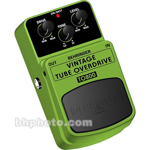 Product description The Behringer TO800 Vintage Tube Overdrive Pedal is a bright green pedal that adds a powerful gain and historic fatness and crunch to your guitar tone.