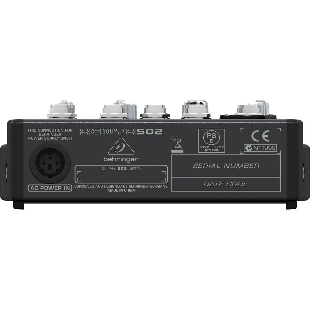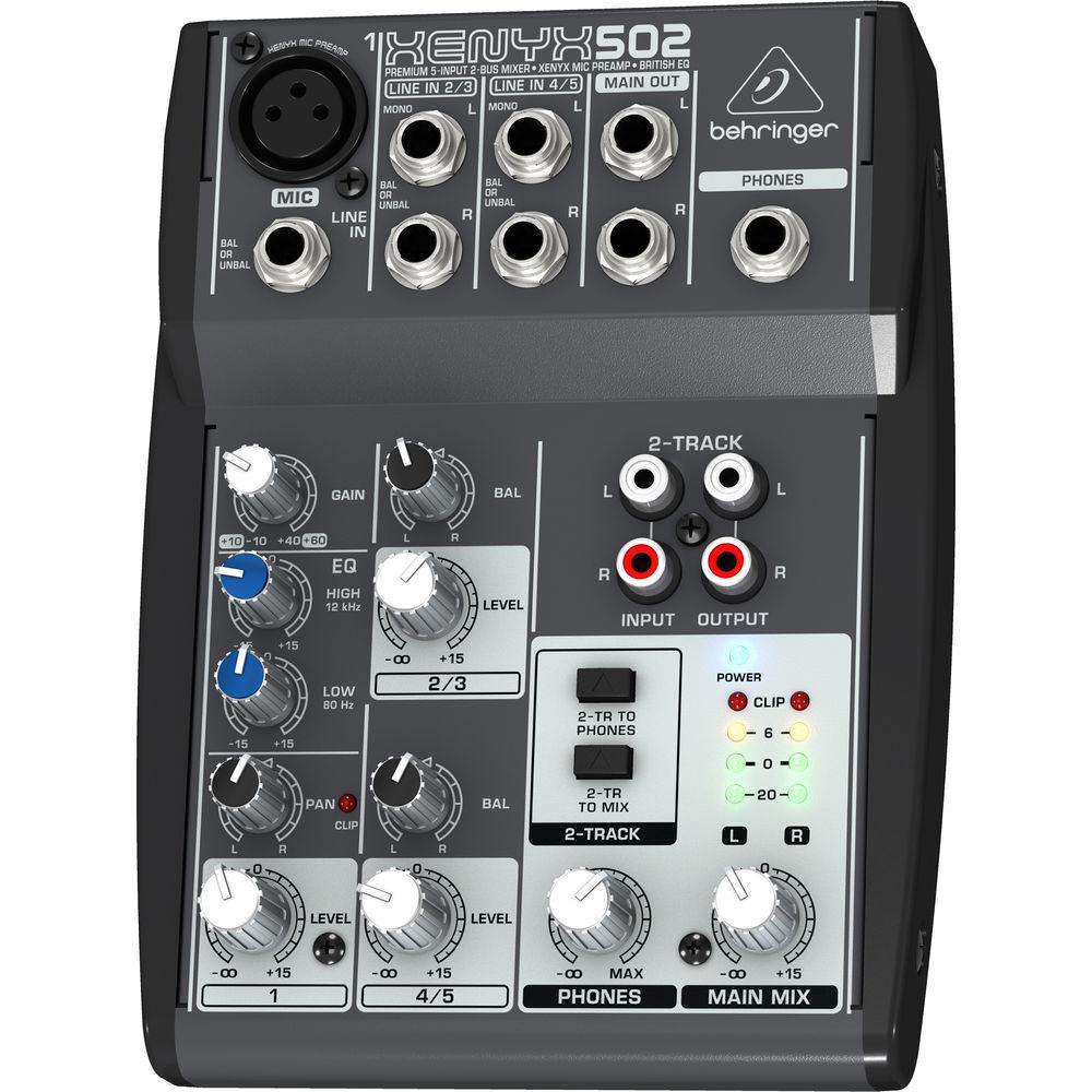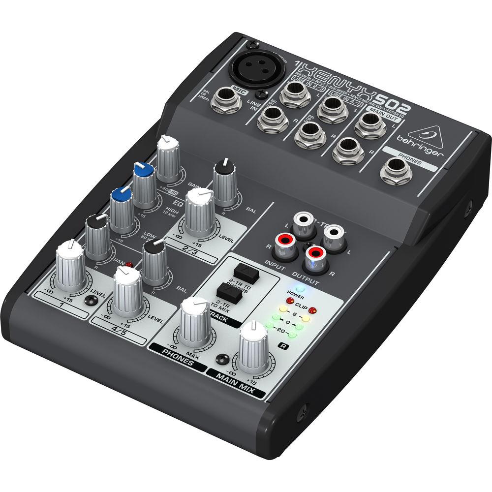 Product description From Behringer, the XENYX series audio mixers are designed to provide real-world features while remaining cost effective and practical. The XENYX 502 is a compact 5-channel audio mixer with a single microphone input and 5 line-level inputs. There is a microphone input and inputs 2/3 and 4/5 are stereo paired for use with keyboards, player/recorders and other stereo devices. An additional stereo I/O is provided for connecting tape and CD devices. The compact 502 is well-suited for project recording, home video editing, small PA systems and more. - 5 Total Input Channels