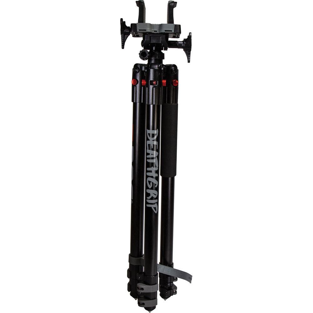 Engineered to give hunters a stable and versatile shooting platform that can adapt to any shooting stance or position, the aluminum BOGgear Deathgrip Clamping Shooting Tripod utilizes a clamping head design that securely holds just about any rifle, shotgun, or other long gun without marking or marring it. The head can tilt forward and back up to 25° for 50° of total tilt travel, with the ability to swivel a full 360° circle. The swivel axis has a tension control adjustment to ensure smooth and steady movement as you scan the landscape before you through your scope or sights. An integrated bubble level ensures level positioning when you set up.Each of its aluminum legs is outfitted with rapid, yet quiet, adjustment lever locks for fast and easy setup and can adjust up to 78" tall so you can choose to shoot while lying prone, kneeling, sitting, or standing. The legs are also outfitted with the All-Terrain Footing System. This system uses rubber feet to absorb shock and vibration as well as deliver non-slip performance on smooth and wet surfaces, and for especially slippery situations, like shooting on ice or in freezing rain, the rubber feet twist up to reveal a steel tip that provides enhanced traction when stability matters most.Easy to set up, easy on your gear, and easy to spot your game—the aluminum Deathgrip Clamping Shooting Tripod gives hunters the stable platform they need to take their shots with confidence. UPC: 661120416692 In the Box BOGgear Deathgrip Clamping Shooting Tripod (Aluminum) Limited 1-Year Warranty Table of Contents