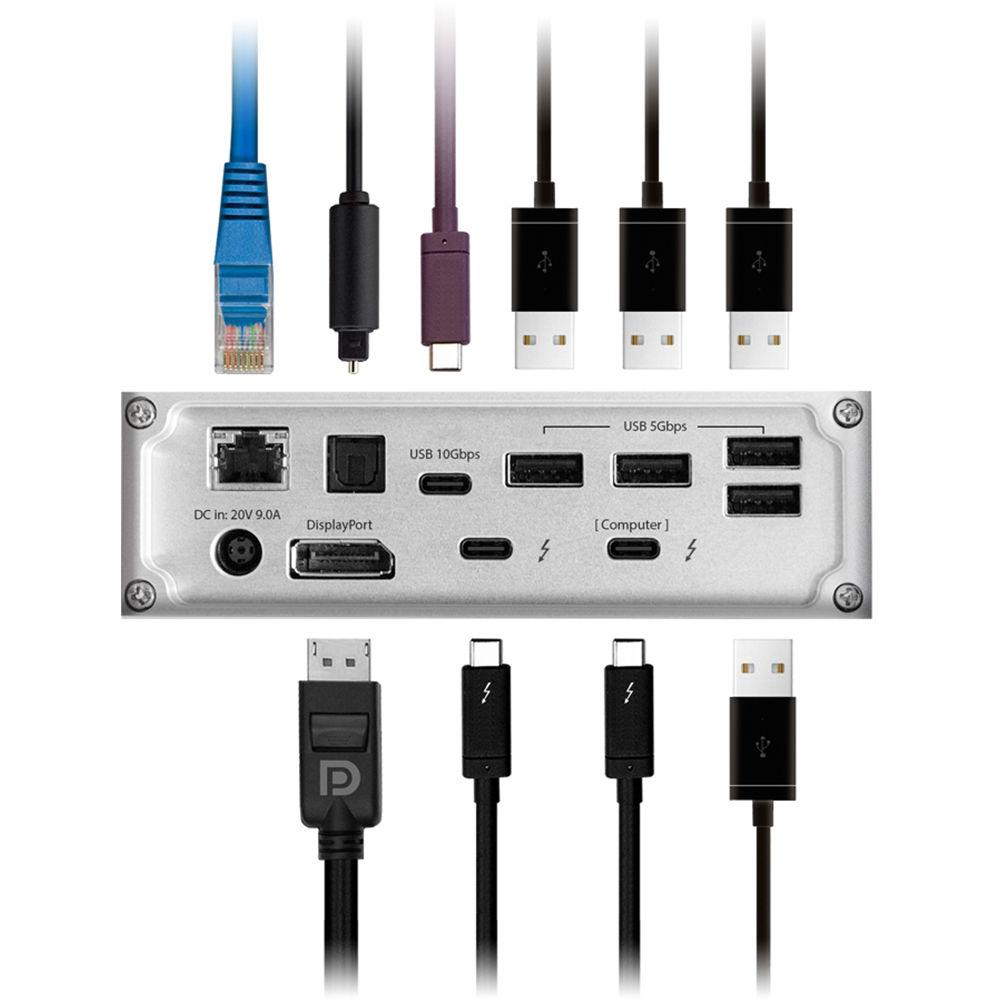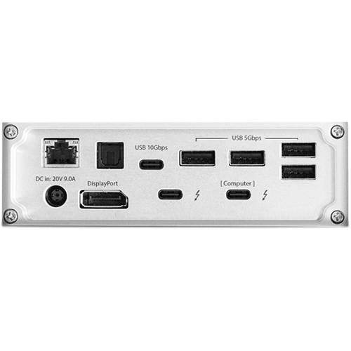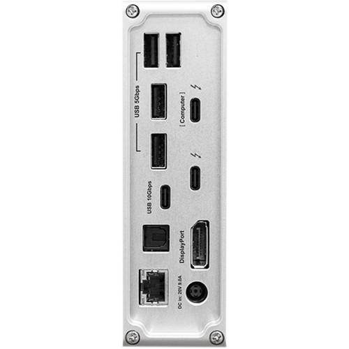 In addition to its Thunderbolt 3 ports, this dock also has one 10 Gb/s USB 3.1 Type-C port, which is also known as USB 3.1 Gen 2, as well as one 5 Gb/s USB 3.0 Type-C port, which is also known as USB 3.1 Gen 1. To maintain compatibility with legacy devices, this dock also has five 5 Gb/s USB 3.0 Type-A ports. The DisplayPort allows for a 4K or 5K monitor to be connected, while the 3.5mm audio ports allow external speakers, mics, and other audio equipment to be connected. Pro-grade digital audio output for a lossless signal transfer is accomplished using the S/PDIF output, network connectivity is achieved using the Gigabit Ethernet port, and the integrated SDXC UHS-II card reader lets you download photos and videos from your digital camera or other device. Additionally, a power cable and a 6.6' Thunderbolt 3 cable are included. In the Box CalDigit TS3 Plus 15-Port Thunderbolt 3 Dock (Silver) 6.6' / 2.0m Thunderbolt 3 Cable Power Adapter Power Cord Limited 1-Year Warranty Table of Contents