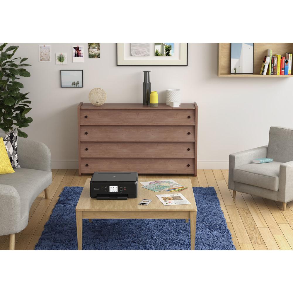 Product description Easy to setup and easier to use, this black Pixma TS6220 Wireless Inkjet All-In-One Photo Printer from Canon is a versatile printer capable of handling a variety of needs. The printer uses five individual ink cartridges—dye-based color cartridges and pigment-based black cartridges—for a wide tonal range. Dual paper feeding gives you options when it comes to loading print materials and duplex printing will help you save money on paper. Built-in Wi-Fi allows for remote printing from your mobile device using services like AirPrint or Mopria. - Print