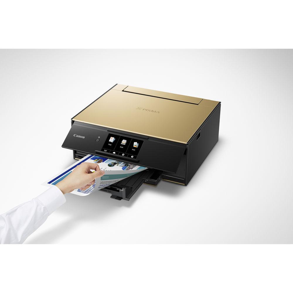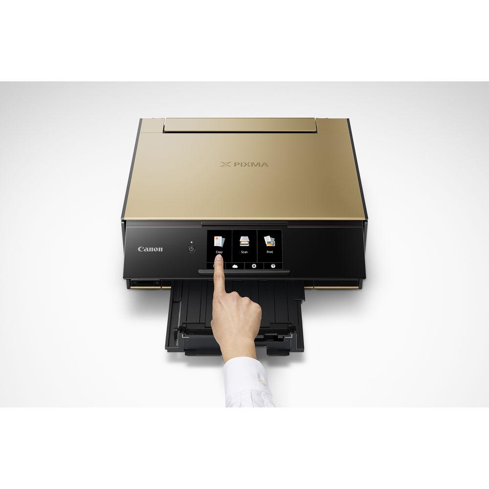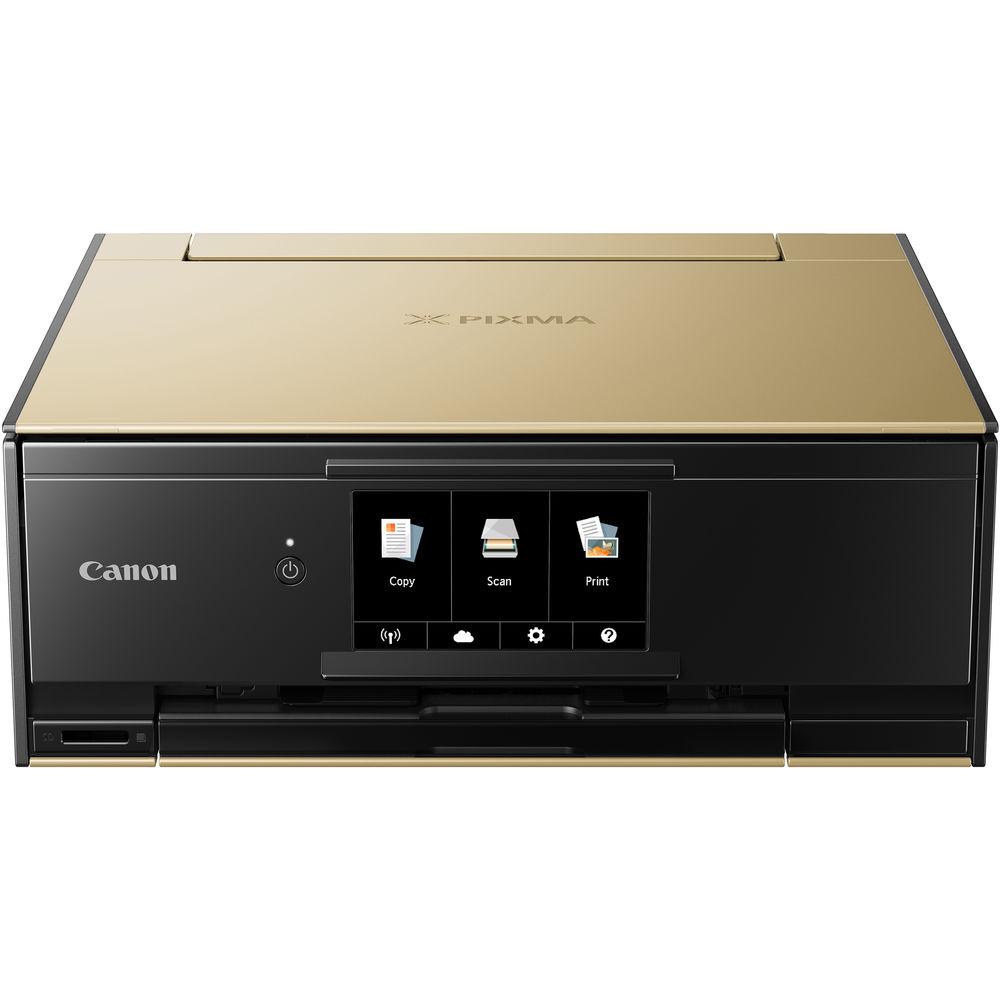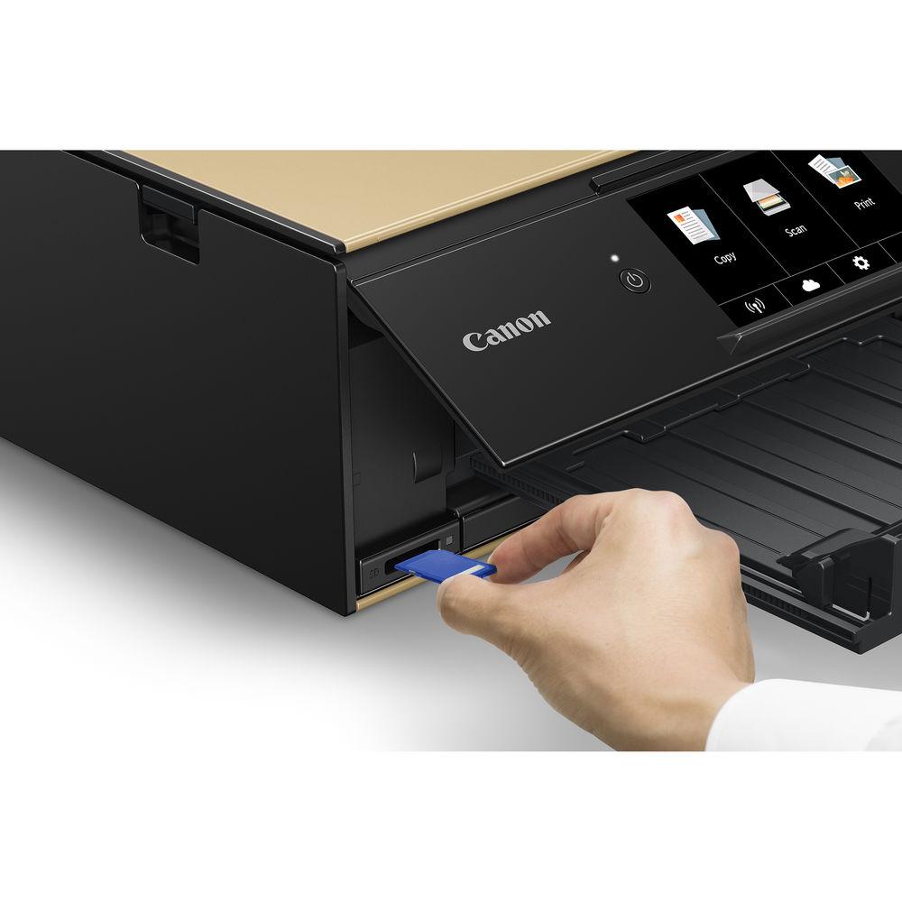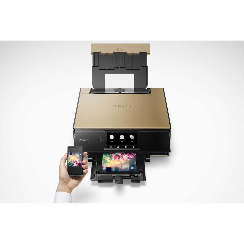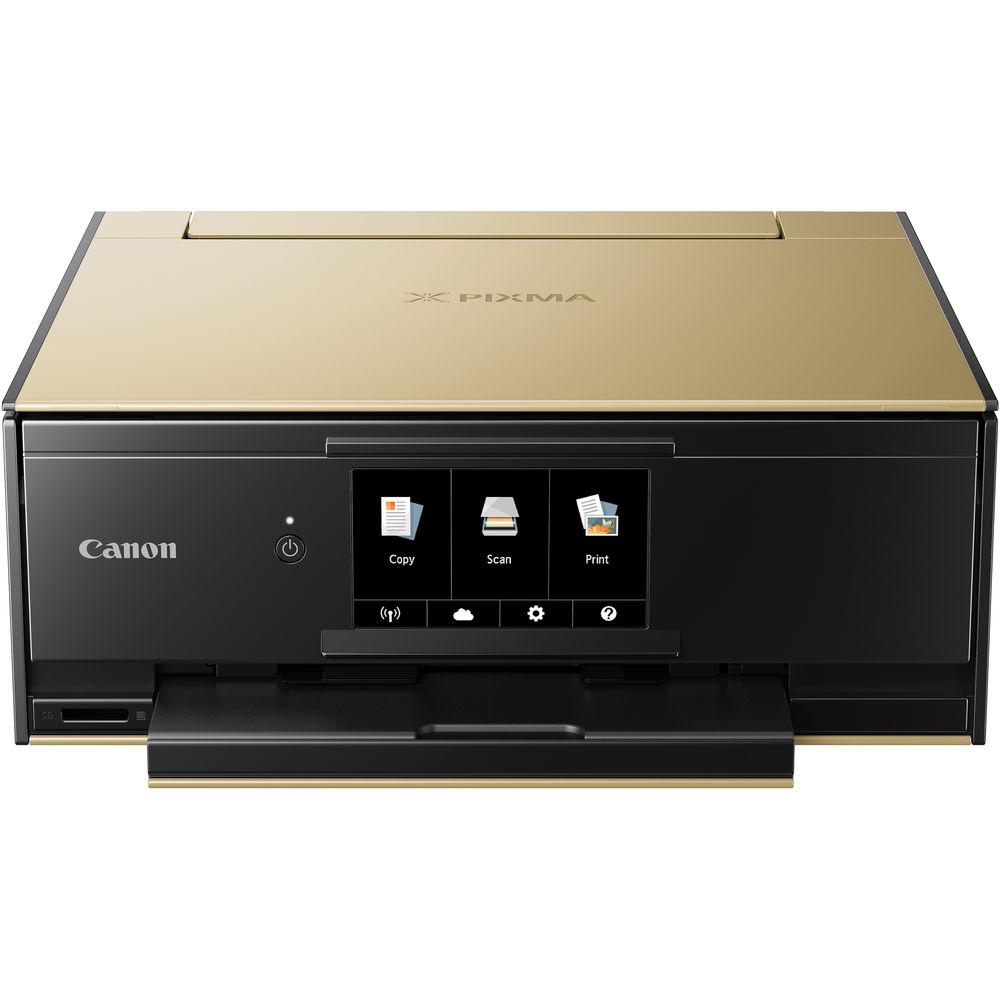 Product description If you are looking for one unit to handle all of the basic needs of your home or small office, the PIXMA TS9120 Wireless All-in-One Inkjet Printer from Canon will be able to help you out, especially since it now supports Bluetooth 4.0 LE for a direct connection to your various smart devices. Sporting a sleek design and gold coloration, as well as advanced print technology, the wireless TS9120 is available for printing, scanning, and copying tasks. For printing, users will benefit from a high 4800 x 1200 dpi resolution for images and documents, while a 6-color ink system with photo blue provides accurate color with smooth gradations and minimal grain.