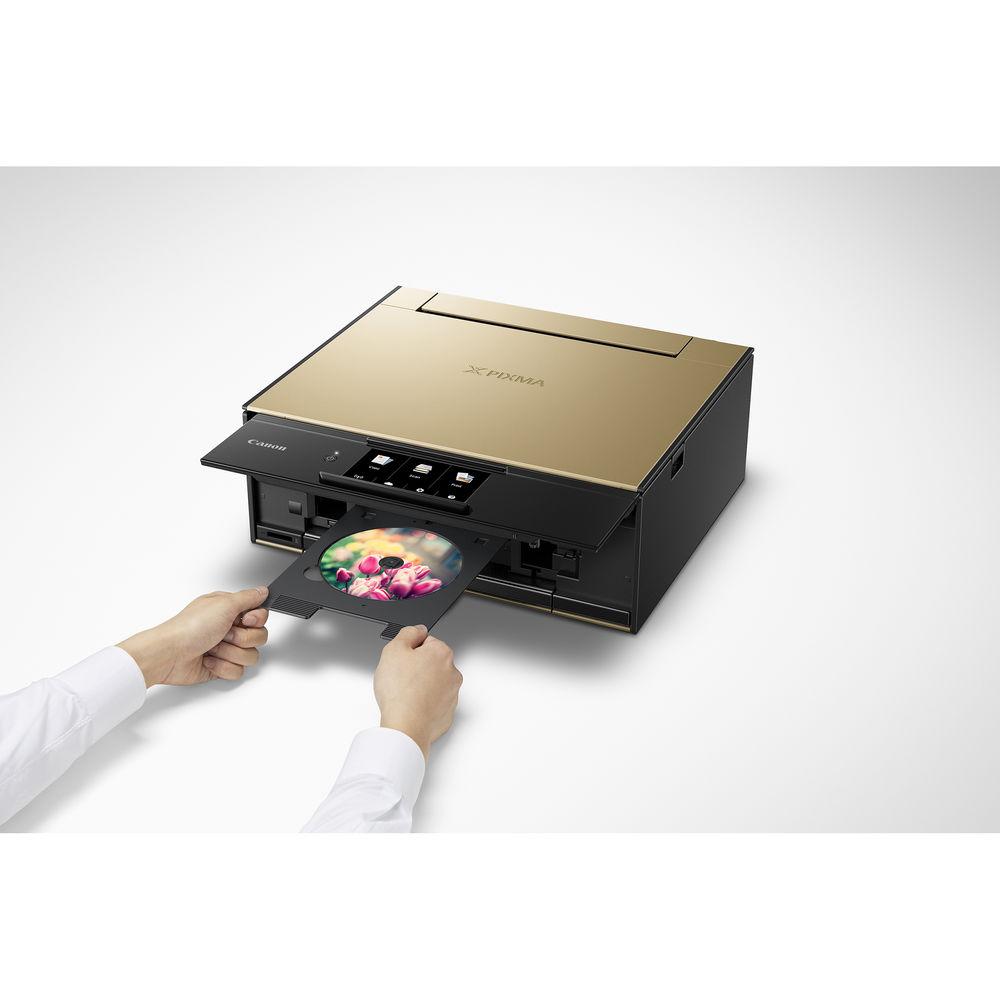 UPC: 013803291018 In the Box Canon PIXMA TS9120 Wireless All-in-One Inkjet Printer (Gold) PGI-280 Pigment Black Ink Tank (11.2mL) CLI-281 Black Ink Tank (5.6mL) CLI-281 Cyan Ink Tank (5.6mL) CLI-281 Magenta Ink Tank (5.6mL) CLI-281 Yellow Ink Tank (5.6mL) CLI-281 Photo Blue Ink Tank (5.6mL) PP-301 Photo Paper Plus Glossy II Sample Pack (4 x 6", 3 Sheets) CD/DVD/Blu-Ray Disc Printing Tray Power Cord Setup CD-ROM Limited 1-Year Warranty Guides & Manuals Table of Contents