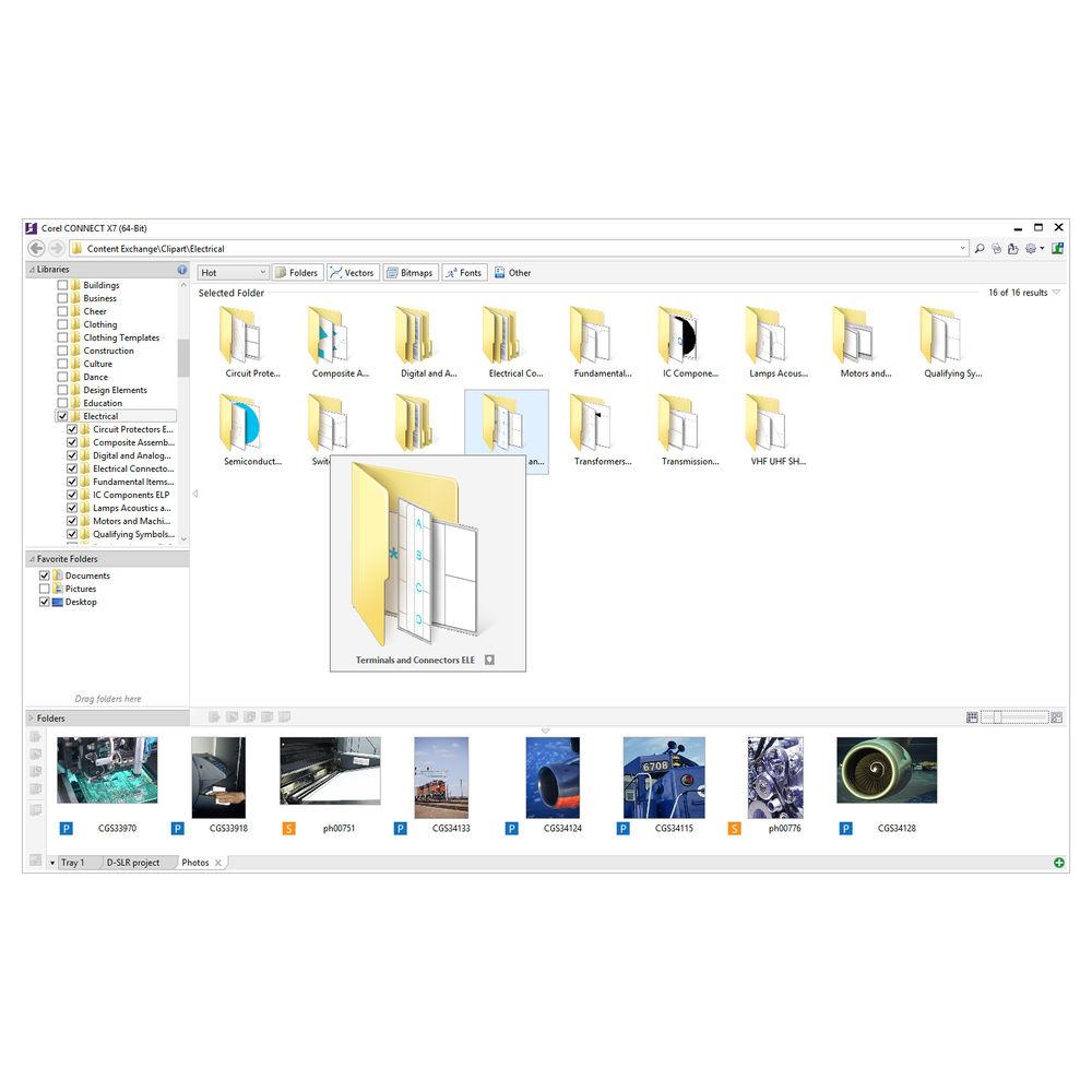 - Instantly find images on your local network and search online portals and websites, and easily access content using built-in content assistant Corel CONNECT. Organize assets by type or project in trays that are shared between Corel DESIGNER, CorelDRAW, Corel PHOTO-PAINT and Corel CONNECT for maximum efficiency. Utilize the Content Exchange and the tray synchronization option with Microsoft OneDrive.