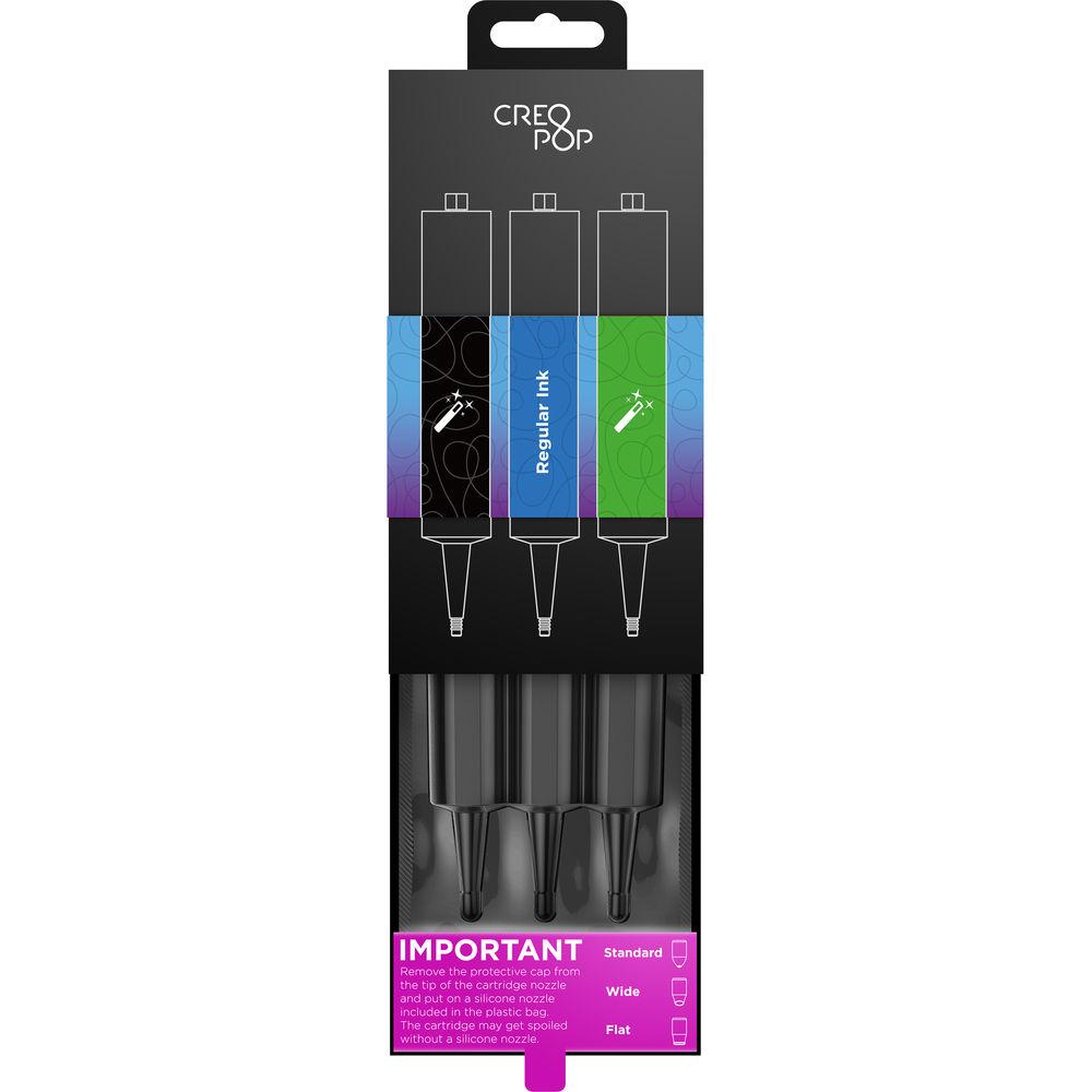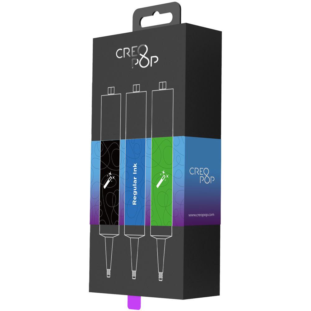 Product description Designed for the Creopop 3D Pen, the CreoPop Regular Ink 3-Pack comes in a variety of vibrant colors. They are black, blue, and green. UPC: 852208006038 Table of Contents