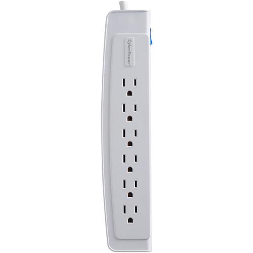 Product description Designed for consumer electronics, personal computers, phones/faxes/modems, printers, stereos, and more, the P606 Home Office Surge Protector from CyberPower helps prevent spikes in energy caused by storms and electrical power surges. It provides 750 joules of protection, six NEMA 5-15R surge-protected outlets, an input of 125V, a 15A circuit breaker, and a maximum surge current of 60,000A. It features a NEMA 5-15P plug with a 45° offset, EMI/RFI filtration of 150 kHz to 100 MHz, and a 6' integrated power cord. General Features Typical Applications Product Overview - Surge Protection