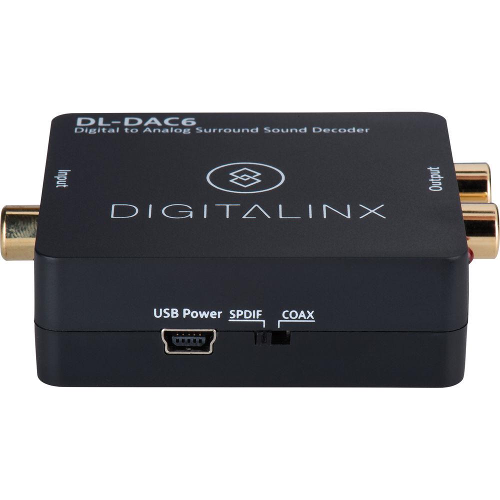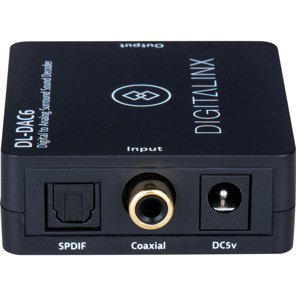 Product description Provided by third party: The DigitaLinx DL-DAC6 is a surround sound to stereo audio converter. The DL-DAC6 features optical and digital coaxial input audio connections. Analog output is simultaneously available on the 3.5 mm jack and the stereo RCA jacks. The DL-DAC6 features a switch to specify, which audio input is being used. - Key Features