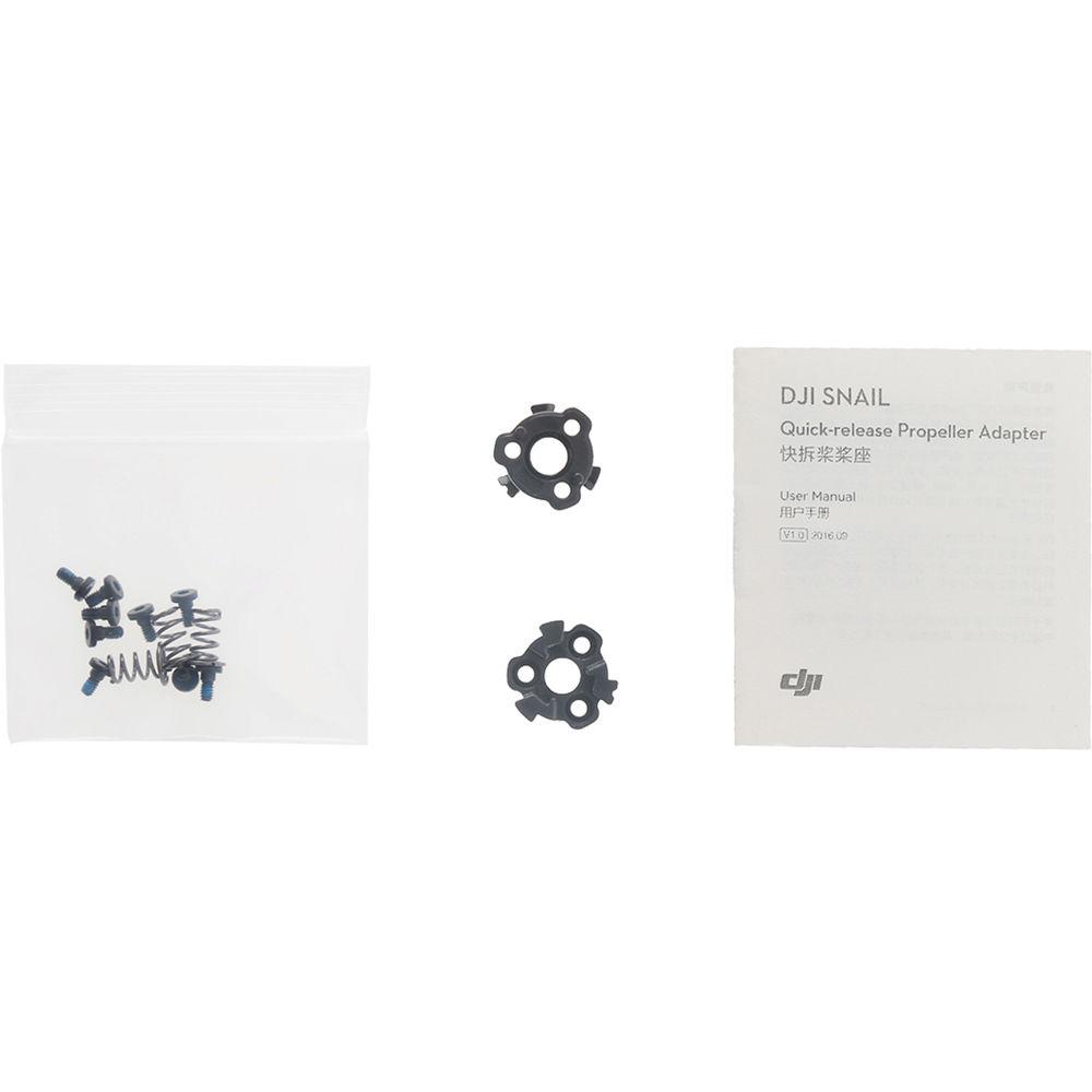 Product description The Propeller Adapter from DJI features a pair of propeller mounting adapters for use with Snail Propulsion System propellers that use quick release hubs. UPC: 190021283367 Table of Contents